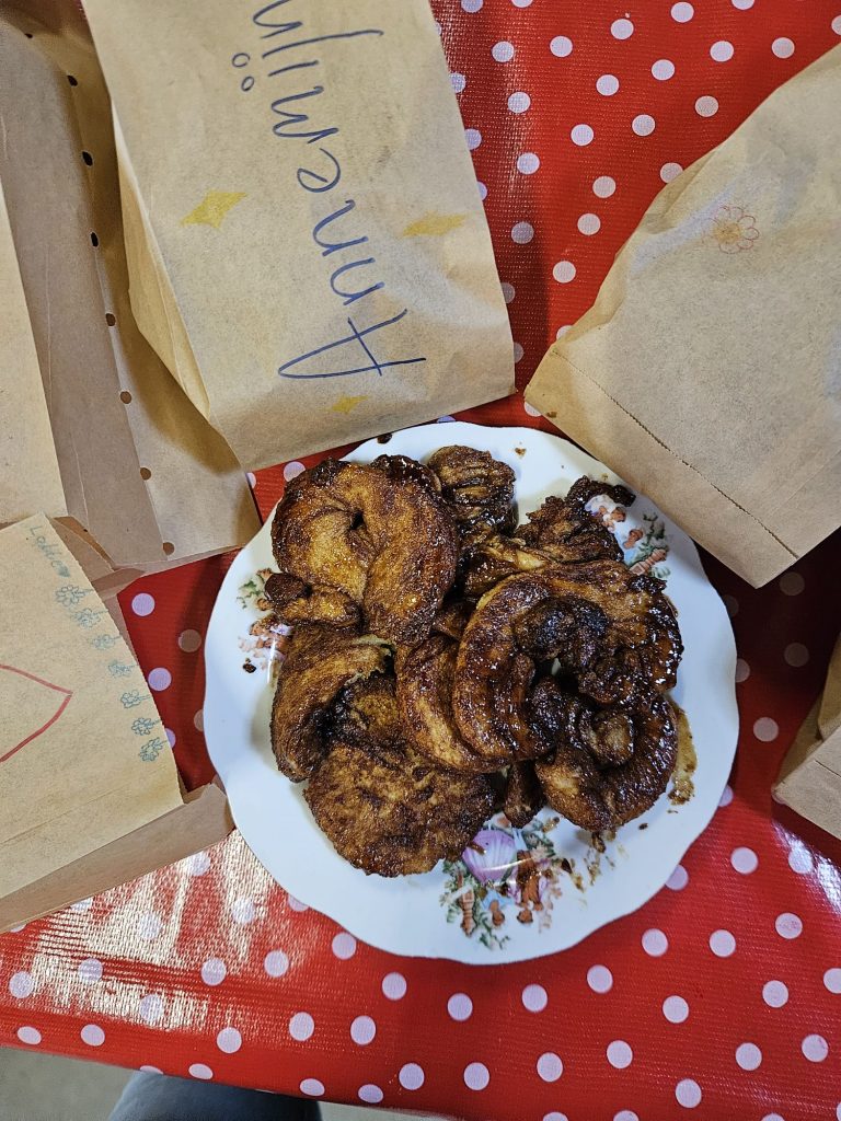 Dus na het bakken hebben ze hier nog heerlijk genoten van een luxe broodjeslunch. Daarna, nagenietend, de schuur uit en hup… op naar Vlissingen!